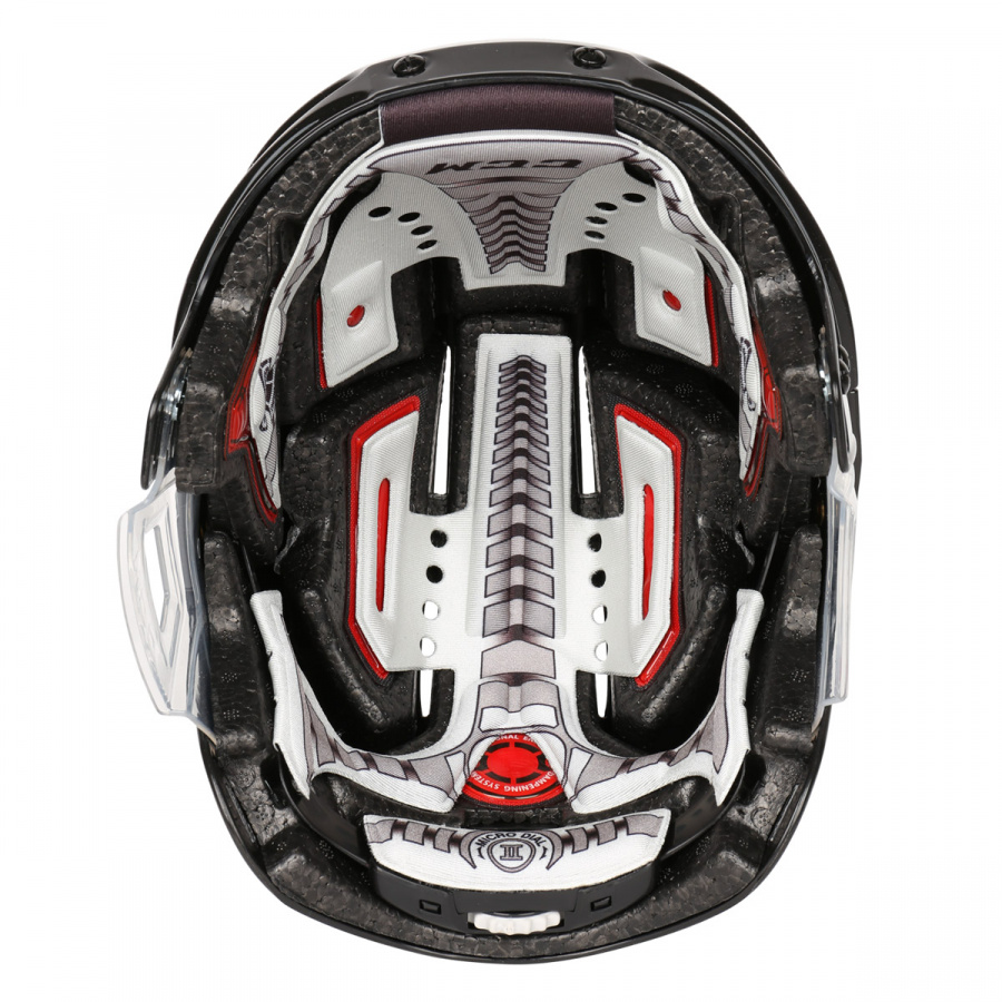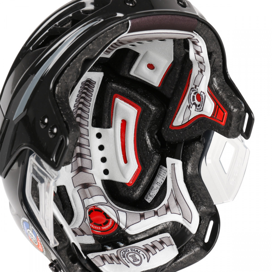 Хоккейный шлем полевого игрока CCM FITLITE SR 15 топовая модель в новой линейке CCM FitLite предлагает хоккеистам высокий уровень защиты и максимально комфортную посадку. Двухсоставной корпус шлема выполнен из высокопрочного PE, устойчивого к механическим повреждениям и ударам, и обеспечивает надежную защиту головы хоккеиста. Внутренняя подоболочка изготовлена из поликарбонатного материала PETG, который так же отличается высокой ударопрочностью и имеет шумоизоляционные свойства. Внутренняя подкладка, прикрепленная механически к корпусу, выполнена из высококачественного, вспененного полипропилена, который отличается износостойкостью, высокой вибро и шумоизоляцией, эффективно поглощает энергию удара, обеспечивая необходимую амортизацию линейных ударов. Для защиты головы от ударов по касательной данная модель оснащена системой Rotational Energy Dampening (R.E.D. System). Данная система защиты расположена в основных точках воздействия и состоит из двух частей. Элементы Impakt Pods,