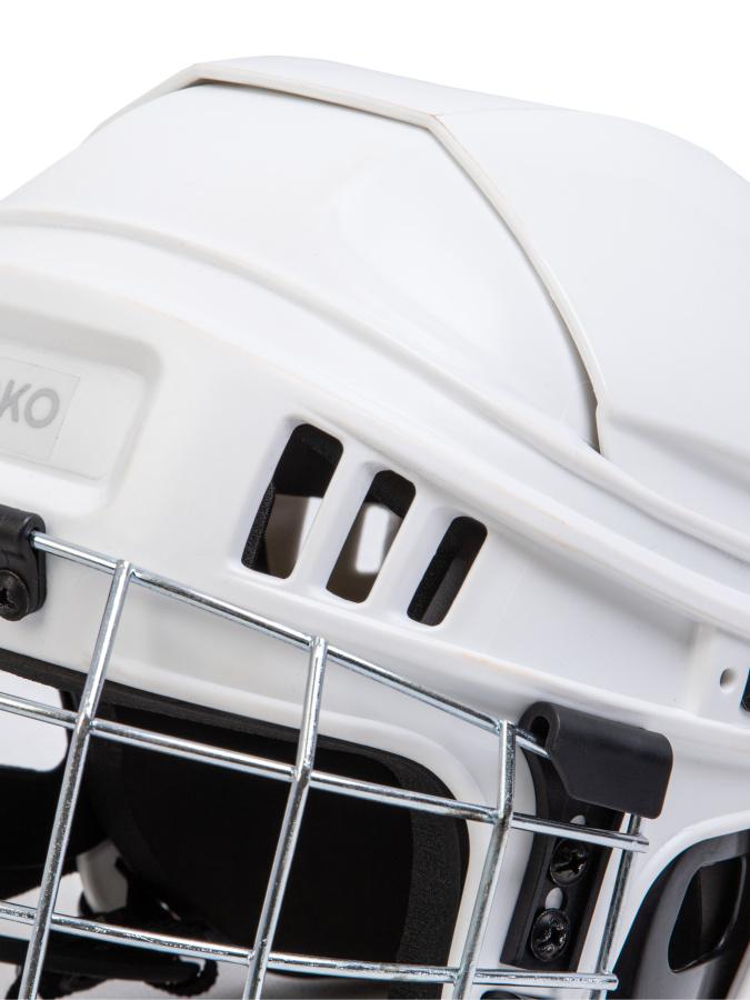 Данный шлем является прототипом популярного шлема ССМ 652, который отлично подходит как начинающих игроков, так и для продвинутых любителей по самой лучшей цене на рынке. Верхний внутренний корпус шлема состоит из полипропилена высокой плотности, который превосходно рассеивает силу удара и не деформируется за время эксплуатации. Прилегающая часть шлема к голове изготовлена из вспененного винилнитрина. А система регулирования позволяет оптимально подогнать нужный размер с помощью винтов и застежек. В конструкции шлема имеются вентиляционные отверстия для выведения лишней влаги. Шлем соответствует европейским стандартам качества.