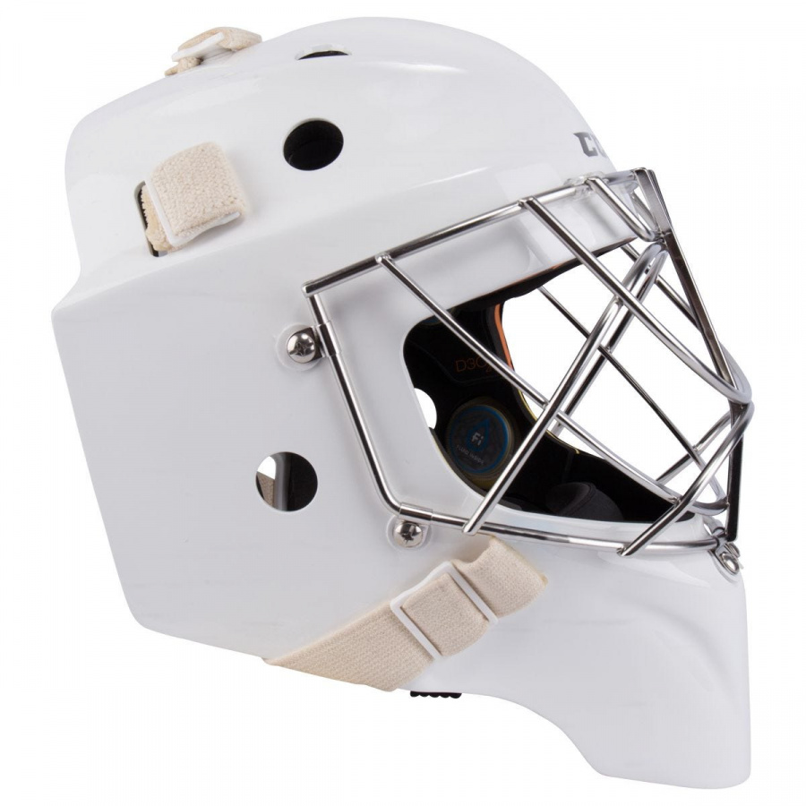Шлем обеспечивает максимальную защиту головы вратаря, в которую во время игры могут приходиться сокрушительные по силе броски. В производстве используются композитные материалы, способные выдержать экстремальные нагрузки, а также современные технологии.