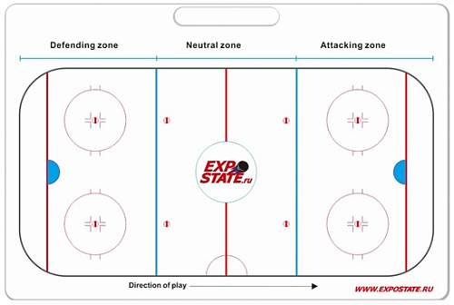 Тактическая хоккейная доска с изображением хоккейного поля. Модель отлично подойдет для тренерской работы с хоккеистами, при помощи доски можно разбирать тактику и стратегию игры, анализировать ошибки, допущенные во время игры. Доска имеет схематическое изображение большого хоккейного поля, удобна для применения в аудиториях или раздевалке. Доску легко переносить, так как в верхней части расположена ручка.