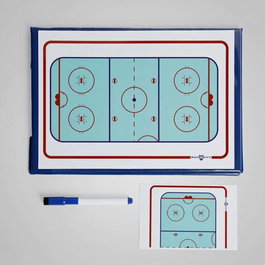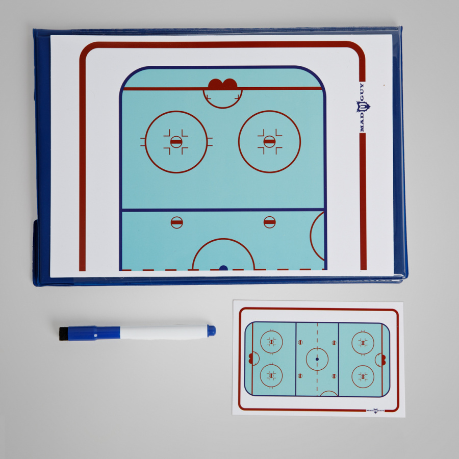 Удобная папка для тренера хоккейной команды формата А4, на которой скопирована ледовая площадка. Планшет предназначен для работы с командой, облегчает работу тренера во время тренировок. Станет наглядным пособием и поможет разрабатывать командные тактические приемы.