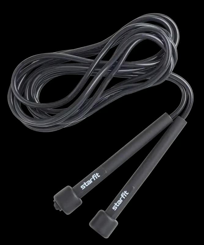Скакалка RP-101 бренда STARFIT – многофункциональный спортивный инвентарь для фитнеса дома или на улице. Такая модель отлично подойдет для функционального тренинга. Скакалка для фитнеса взрослая также поможет быстро привести себя в форму, обратите на нее внимание, если ищете товары для похудения. Изделие будет также актуально и как скакалка для кроссфита, и как скакалка для бокса. Прыгалки взрослые комфортны в использовании, легкие пластиковые ручки надежно фиксируются кистью. Скакалки регулируются по длине и сделаны из высококачественных современных материалов, а эффектный дизайн выделит спортивные товары от STARFIT среди других аксессуаров. Скакалка имеет длину 3 метра, такой размер подойдет для взрослых с ростом не выше 180 см. Преимущества: Легкие пластиковые ручки; Регулируемая длина; Износостойкое изделие. Характеристики: Цвет: черный Материал шнура: ПВХ Длина шнура, см: 300 Диаметр шнура, см: 0,5 Материал ручки: пластик Длина ручки, см: 12,5 Диаметр ручки, см: 1,1 Тип упаковки: пакет с хедером Размер у