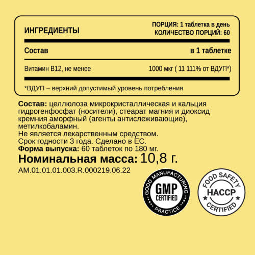 Нам его требуется всего 2 миллионных грамма в день, за всю жизнь как пшеничное зернышко, а его хватает для 70 триллионов клеток организма. Формы приема: Метилкобаламин, Дибенкозид, Аденозилкобаламин (предпочтительно спрей или сублингвальные формы (под язык)) Синергисты: Кобальт Антагонисты: Медь, Железо (при дефиците Б12 страдает усвоение железа. Но при одновременном приеме железо+Б12, Витамин Б12 может терять до 30% своей активности. При сочетанном дефиците по возможности разносить прием препаратов во времени), Марганец, Витамины Е, Б1, Б3, Б9, А, К2 (МК-7), Витамин С Восполняющая доза: М/Ж 700-1000 мкг (0,7-1 мг) Курящие до 3000 мкг (3 мг) Профилактическая доза: М/Ж 3 мкг Функции: Жизнерадостность Оптимизм Отличная работа мозга и нервной системы Энергетический обмен веществ Производство красных кровяных телец Усвоение жиров Мышечная деятельность Одна из главной задач Б12 – произвести метионин, который в нашей психике управляет главными чувствами: доброта, любовь, радость.